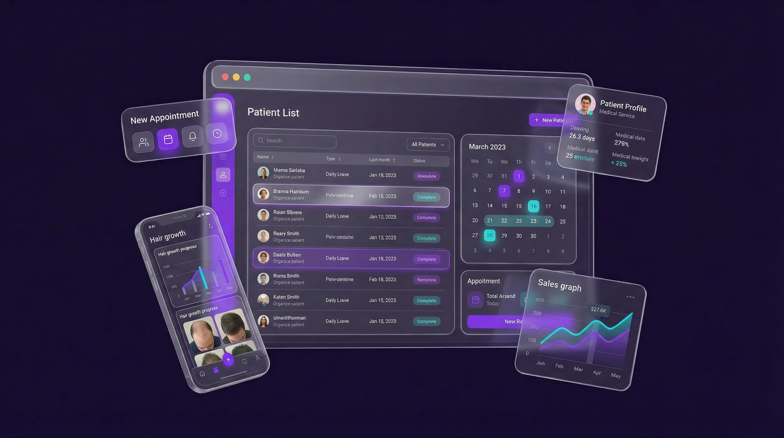 Creato dai tricologi per i tricologi. Gestisci pazienti, terapie, foto, vendite e comunicazioni in un'unica piattaforma integrata.